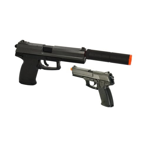 This pistol is well put together and offers similar levels of detail as KSC's much more expensive MK23.The gun is also made out of durable ABS plastic, not that cheap dingy plastic.It shoots very well, is weighted nicely, and is very fun.Loading the gun is also a pain, as together; the two magazines will hold 52 rounds, which would take minutes to load everything. The mock silencer is nice, but it doesn't seem to do much besides make the gun look cooler, despite seeming to tip very slightly downward. But, that's just fine. The accuracy is amazing. It can hit a man sized target at almost 100 feet, and the gun shoots almost as hard as UTG's famed spring shotgun (which shoots 330 fps with .12 gram BBs).